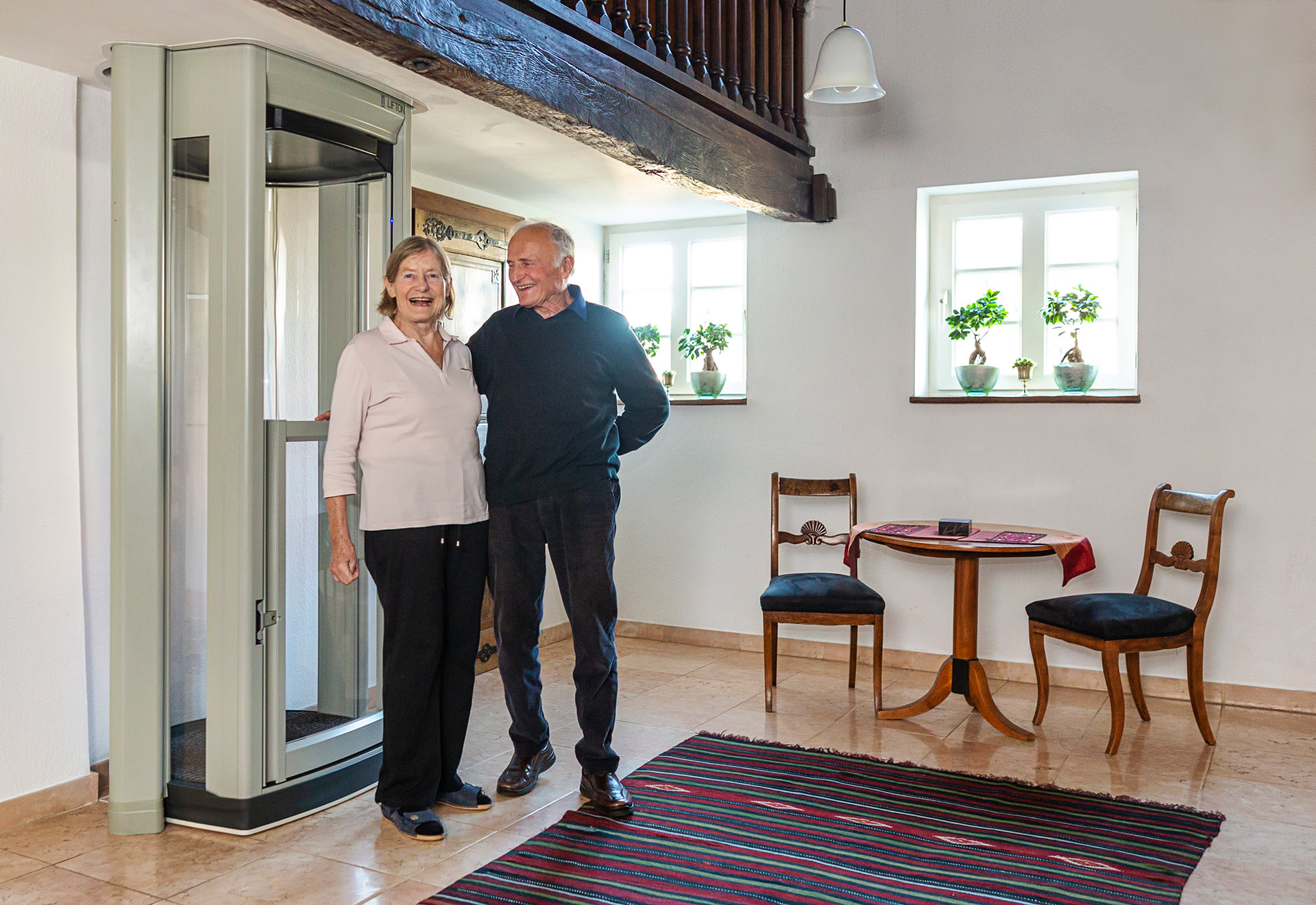 Als logische Konsequenz auf die Frage: „Können wir noch im Haus leben, wenn wir älter werden?“, haben sich Jutta und Harald gleich für zwei LIFTON DUO entschieden. Platzsparend verbinden die Lifte elegant mehrere Etagen miteinander.